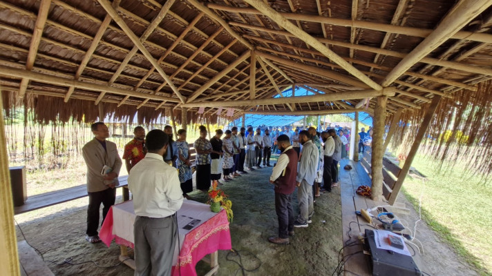 Mazoum Seventh-day Adventist Church currently worships under a temporary lamb shelter dedicated by Pastor Francis Nima, District Director for Wewak Island and West Coast District.