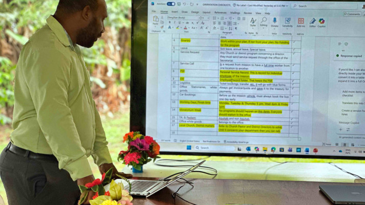 Leading the morning session was newly appointed Mission Secretary Charles Paul. Also present was Associate Chief Financial Officer Bilfred Kangei, who was appointed during the Papua New Guinea Union Mission Business Session last year.